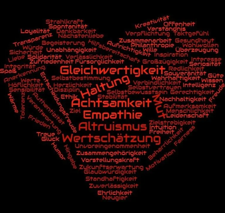Haltung, Aufrichtigkeit, Altruismus, Empathie, Achtsamkeit, Respekt und Gleichwertigkeit – dies sind ein paar ausgewählte Werte, die uns wirklich wichtig sind.